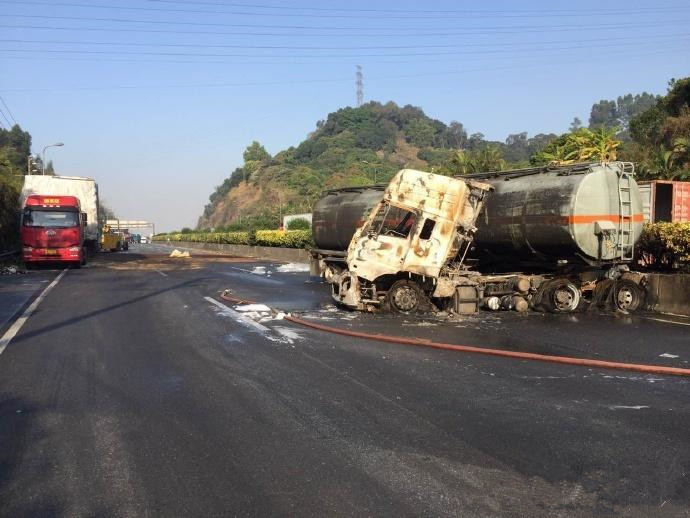 今天上午十一點(diǎn)左右從東莞想廣州方向到達(dá)虎門大橋虎門出現(xiàn)一起交通事故,由于我們想廣州方向,所以沒有受到影響,現(xiàn)場濃煙滾滾在虎門大橋向東行駛方向看到一輛載有類似化學(xué)物的油罐車碰到護(hù)欄發(fā)生起火,當(dāng)時的情況看來并未發(fā)生人員的傷亡,由于罐車橫向占據(jù)了幾條車道導(dǎo)致交通堵塞,后來在新聞上面看見經(jīng)過消防確認(rèn)存在甲醇泄漏現(xiàn)象,導(dǎo)致周圍居民投訴,出現(xiàn)嚴(yán)重的氣味,由于化學(xué)物品的嚴(yán)重泄漏,導(dǎo)致清理現(xiàn)象困難,為交通帶來擁堵。